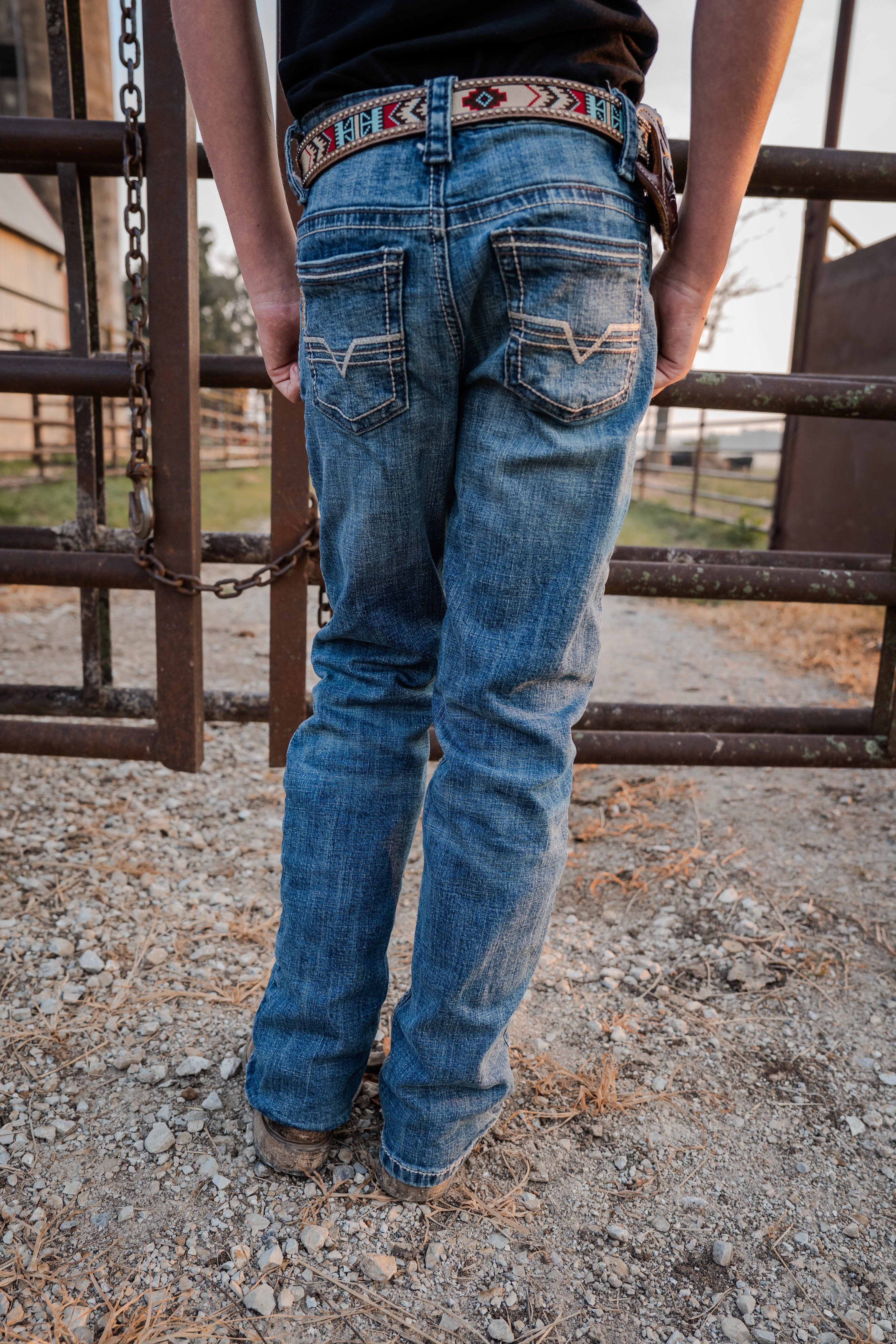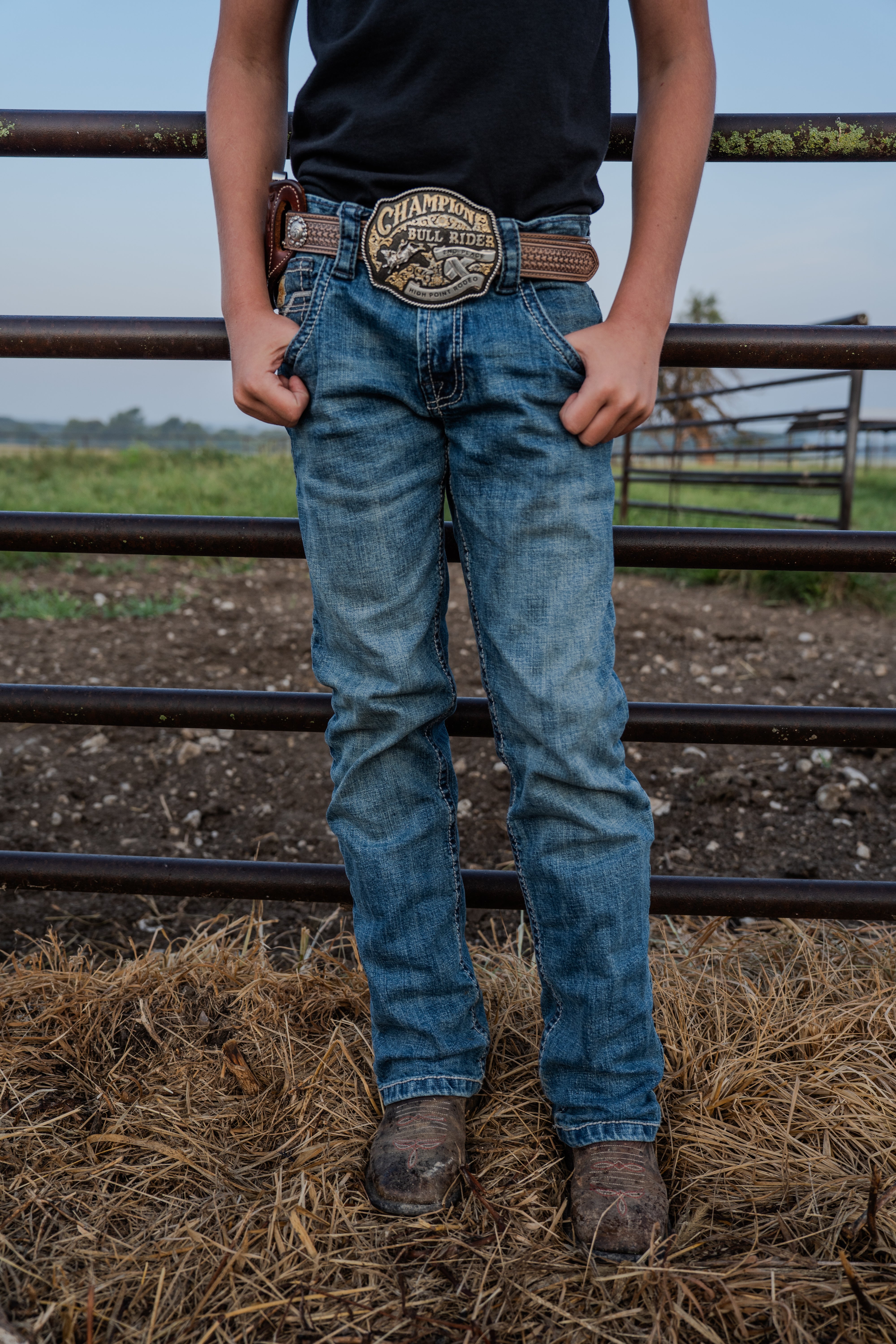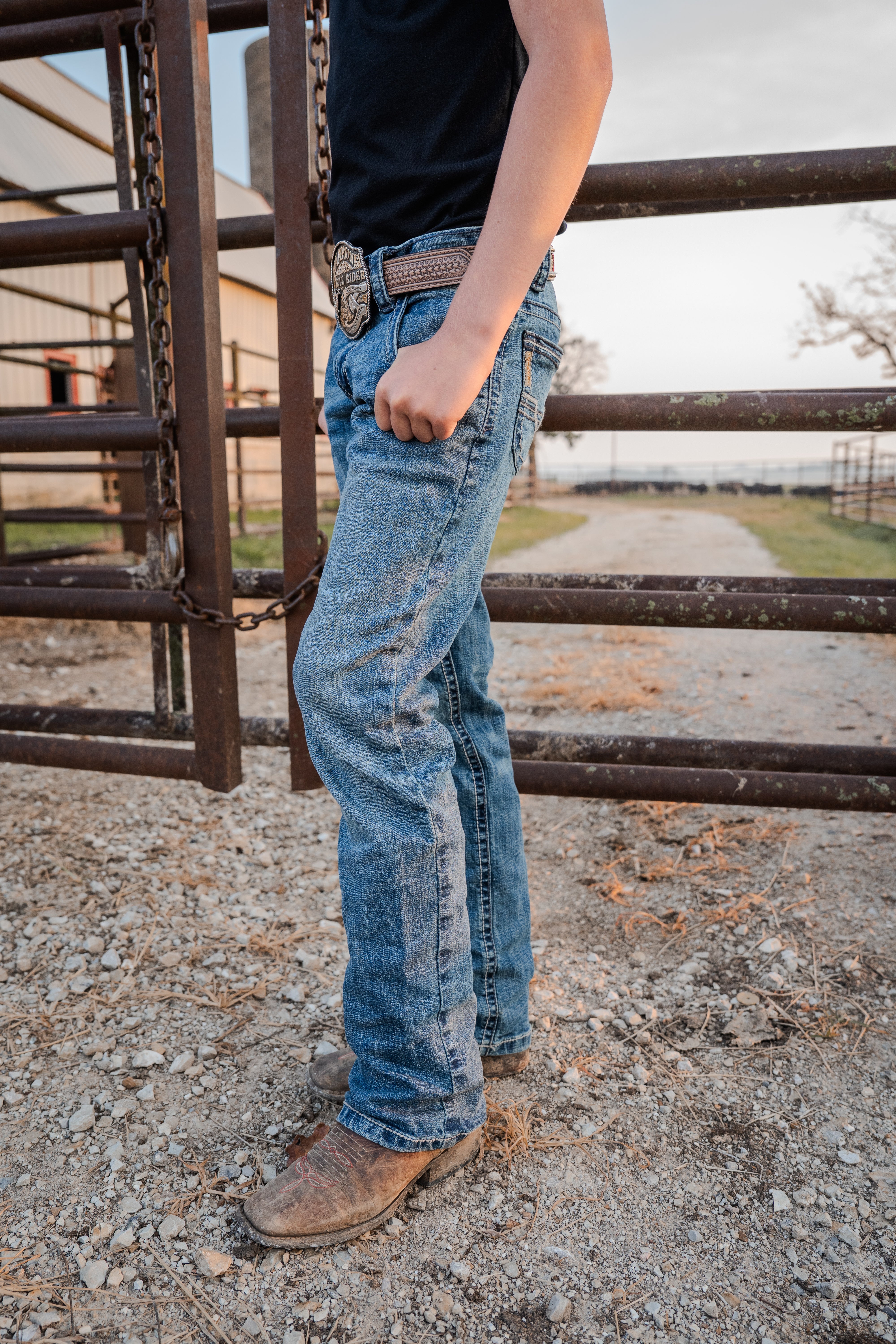A great-looking Cinch Boys Slim Fit jean with built-in comfort and durability. This boys jean features cool finishes such as hand sanding, whiskers, chevrons and tacking.
