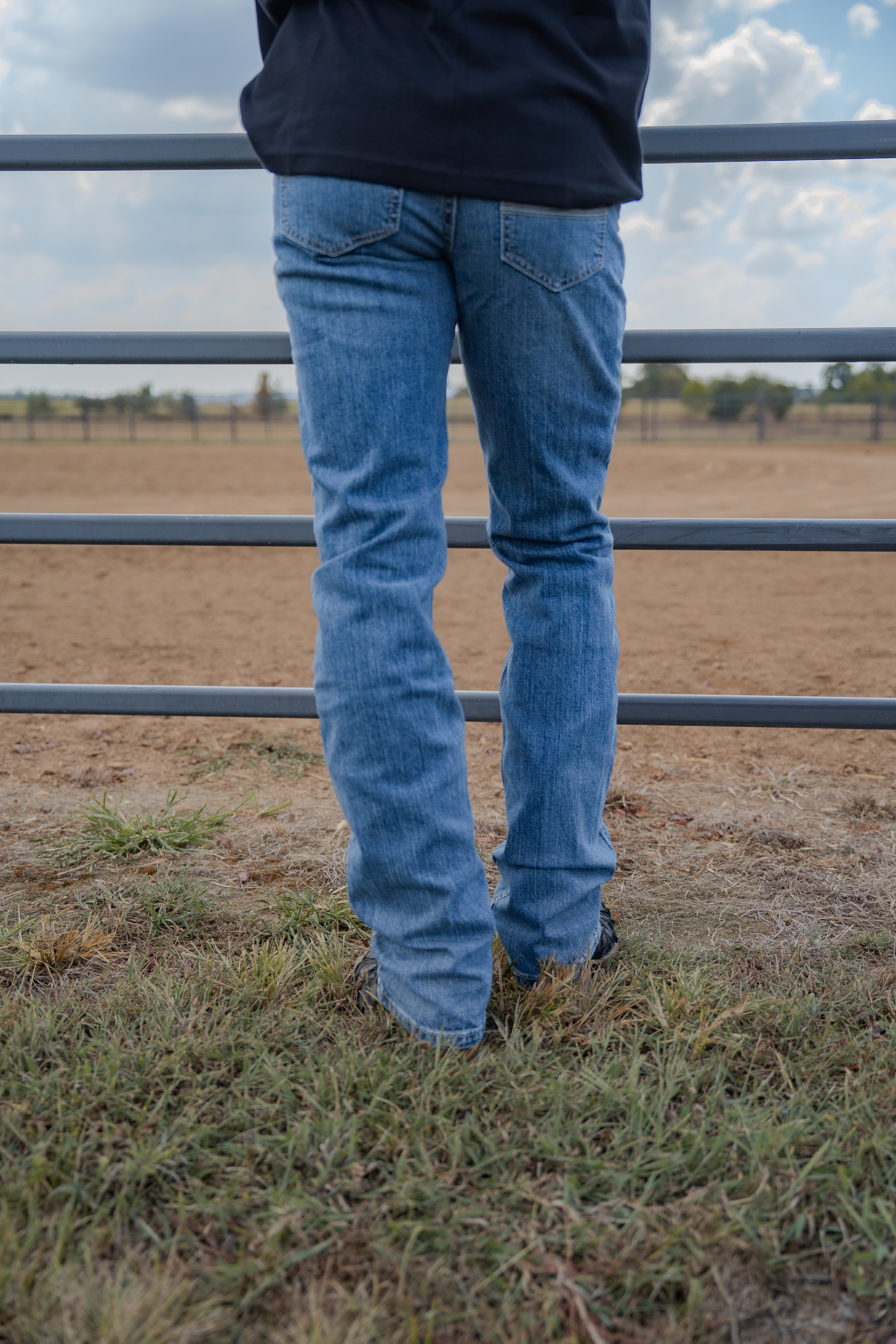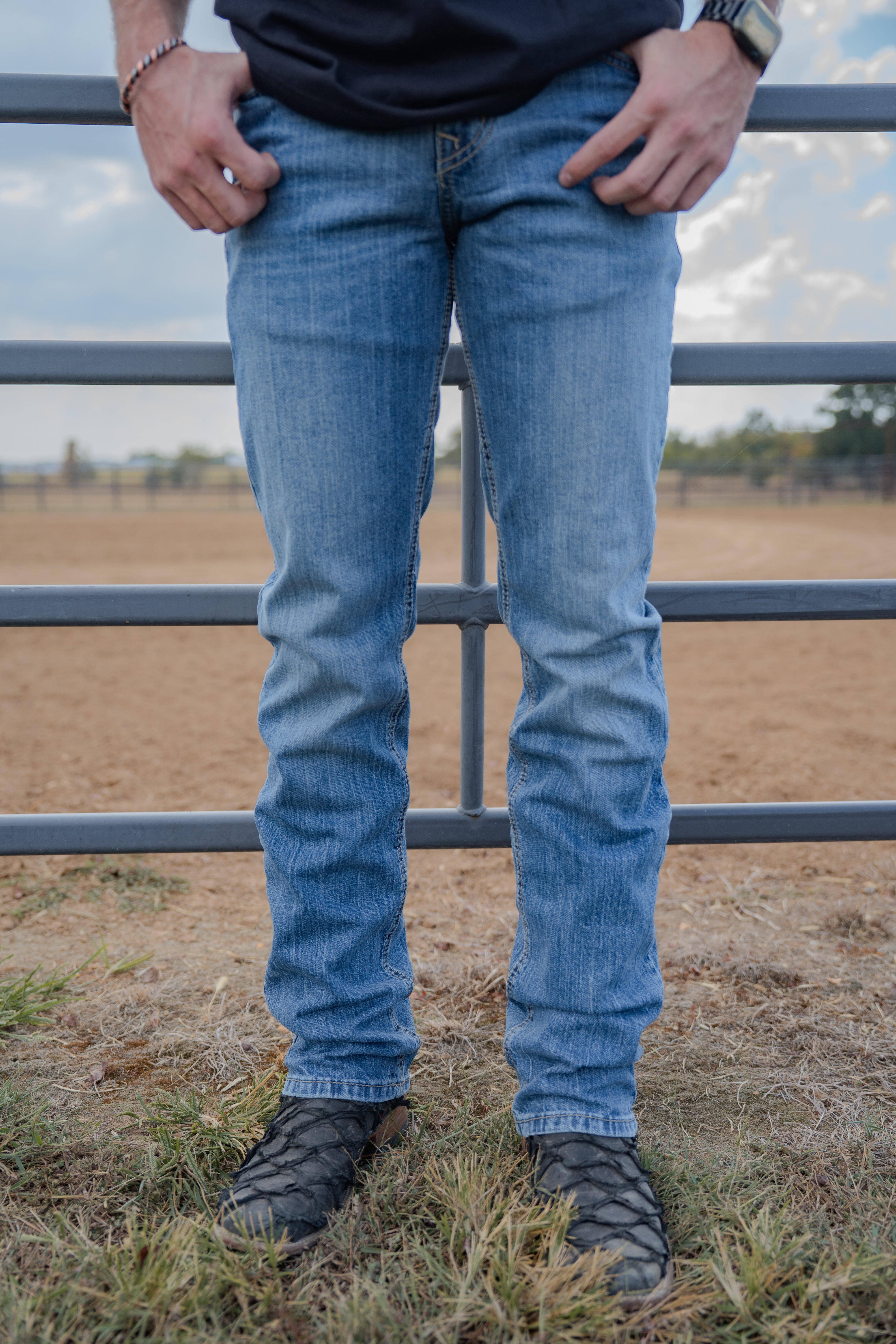 The IAN brings forth a modern finish in a retro medium stone wash. It is perfect for everyday wear, with a performance arena flex denim.