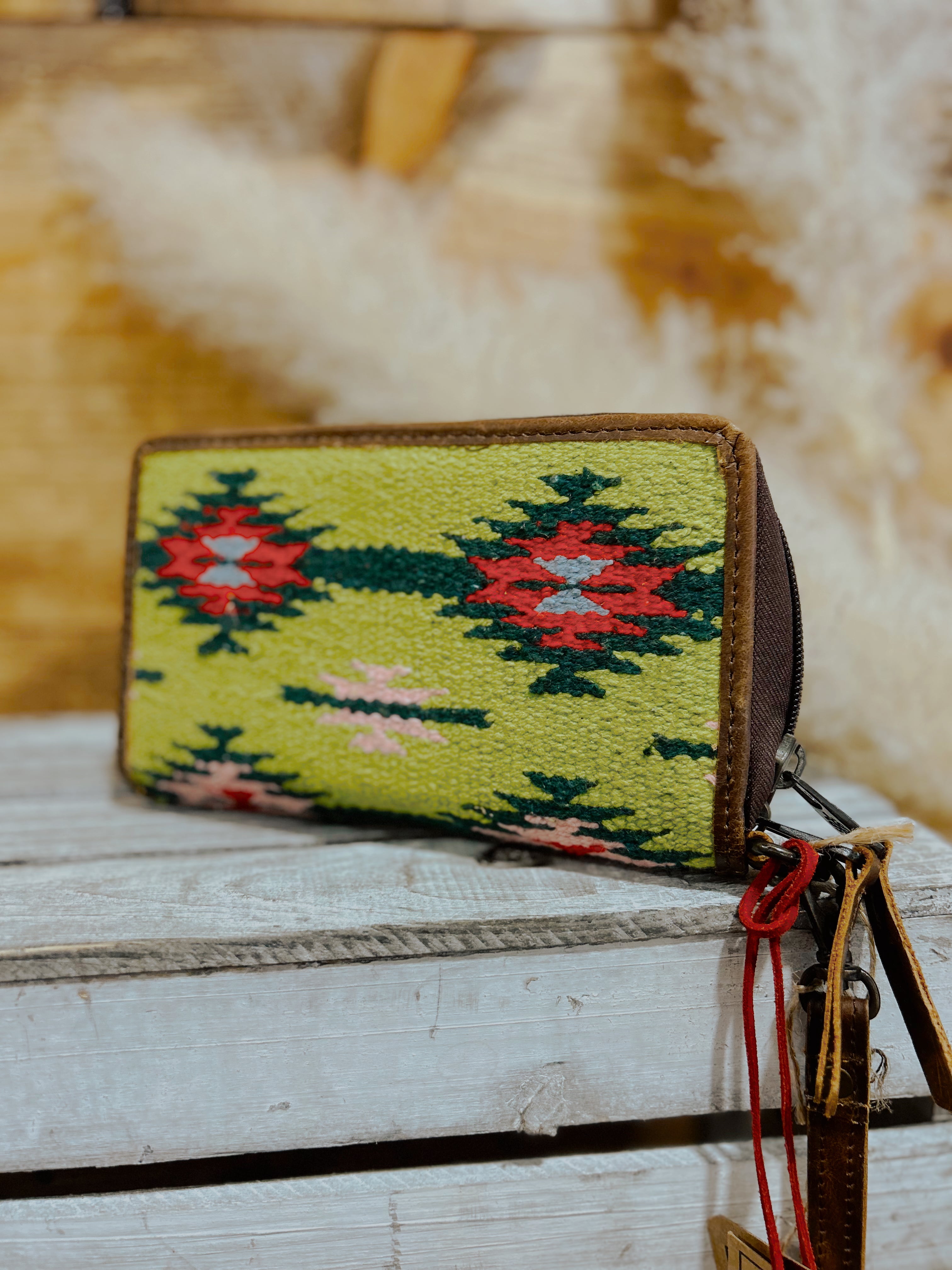 Inspired by the color of the year and nature's greenery, this collection combines tones of the teal, red and pink accents along a rustic full grain tanned leather for a handbag that is sure to turn heads.