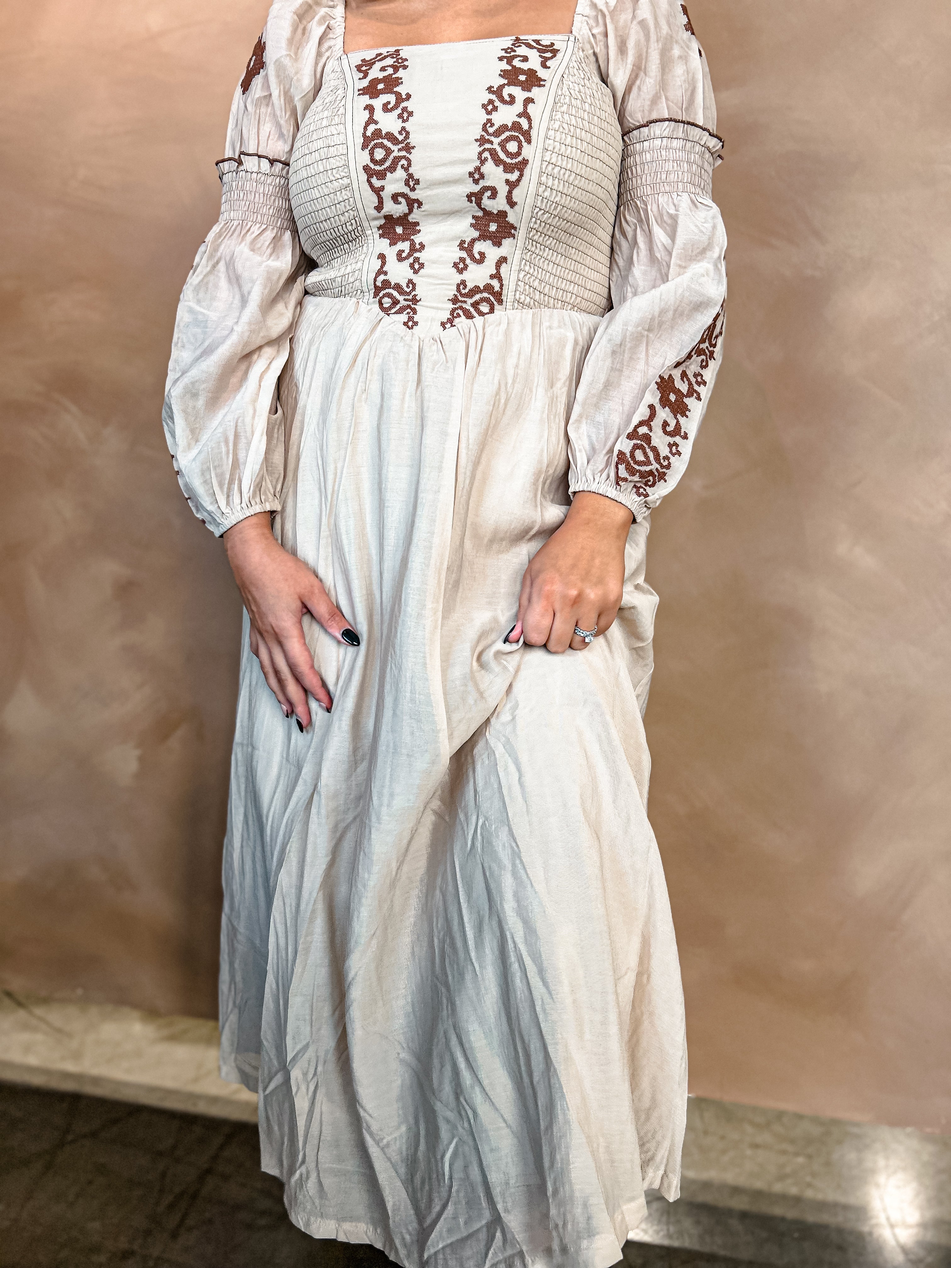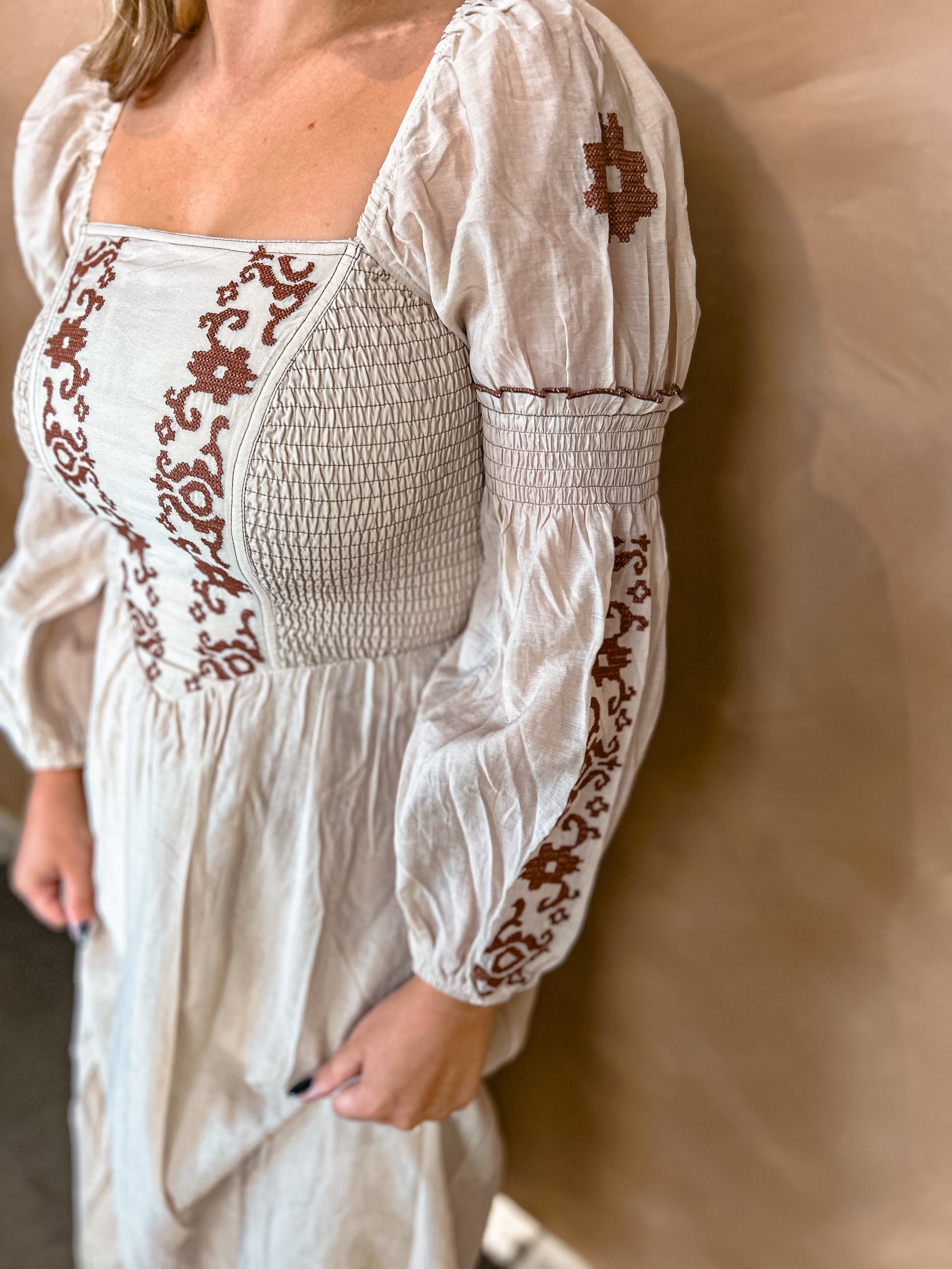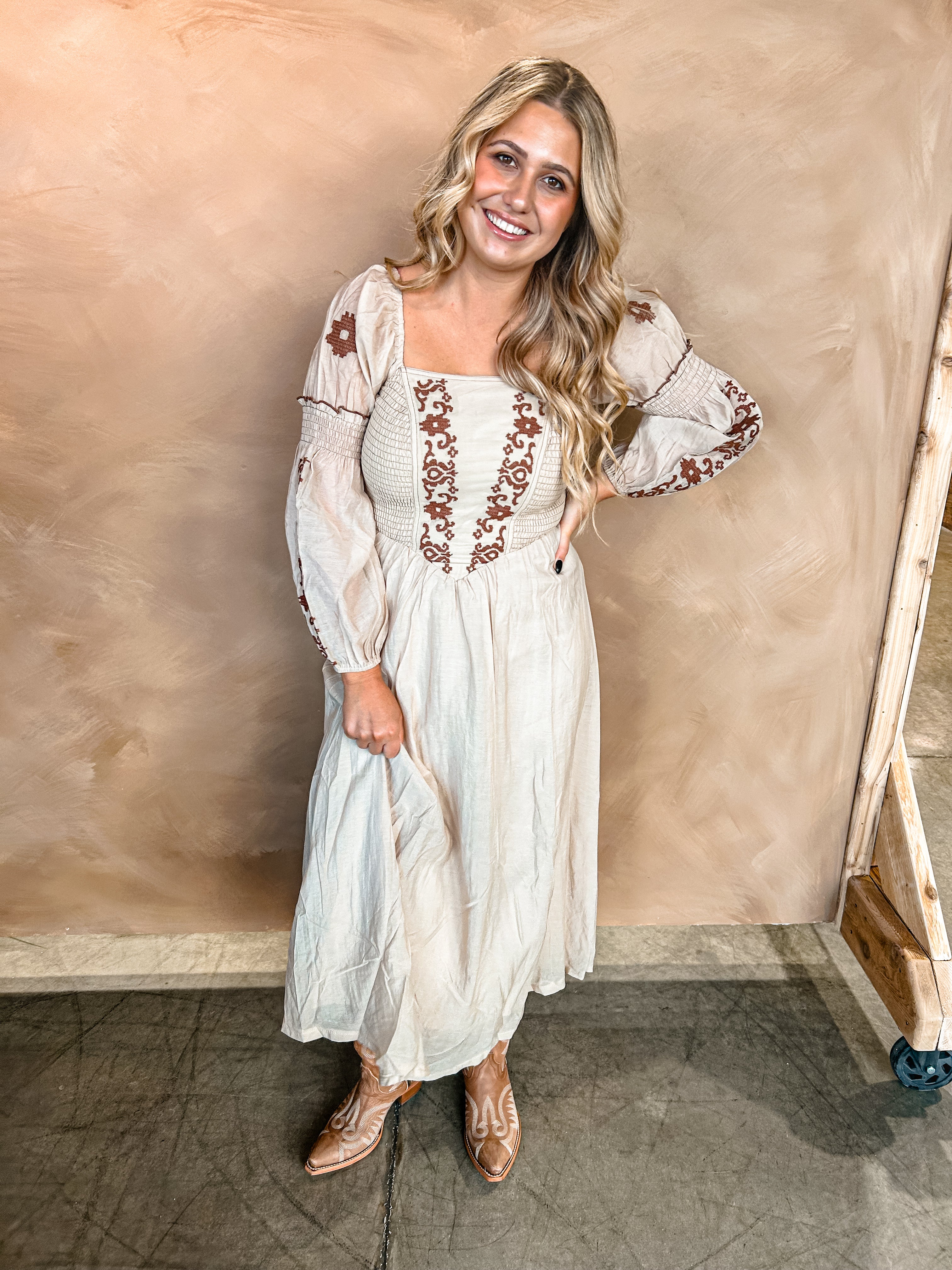 A gorgeous and unique dress with western flair! Flowy but fitted at the same time, this dress is the perfect addition to your Fall wardrobe!
