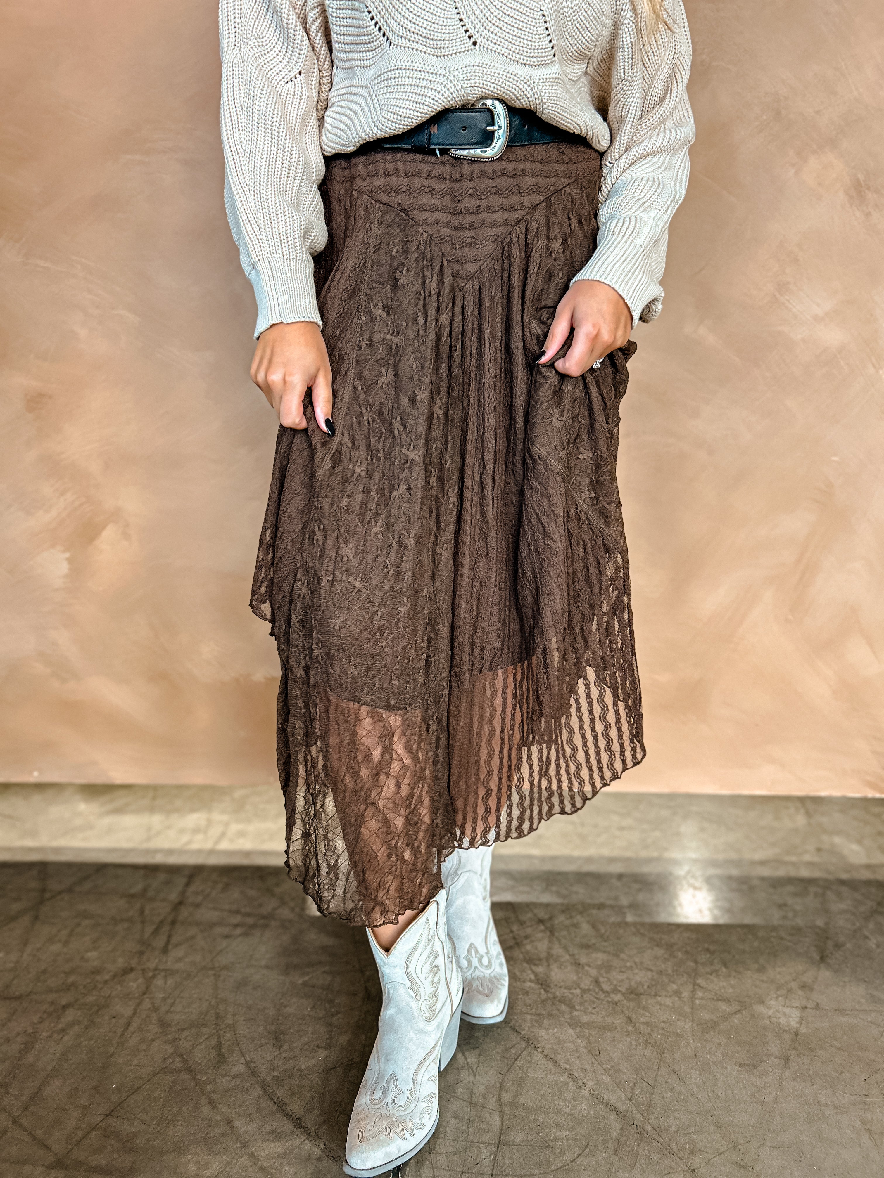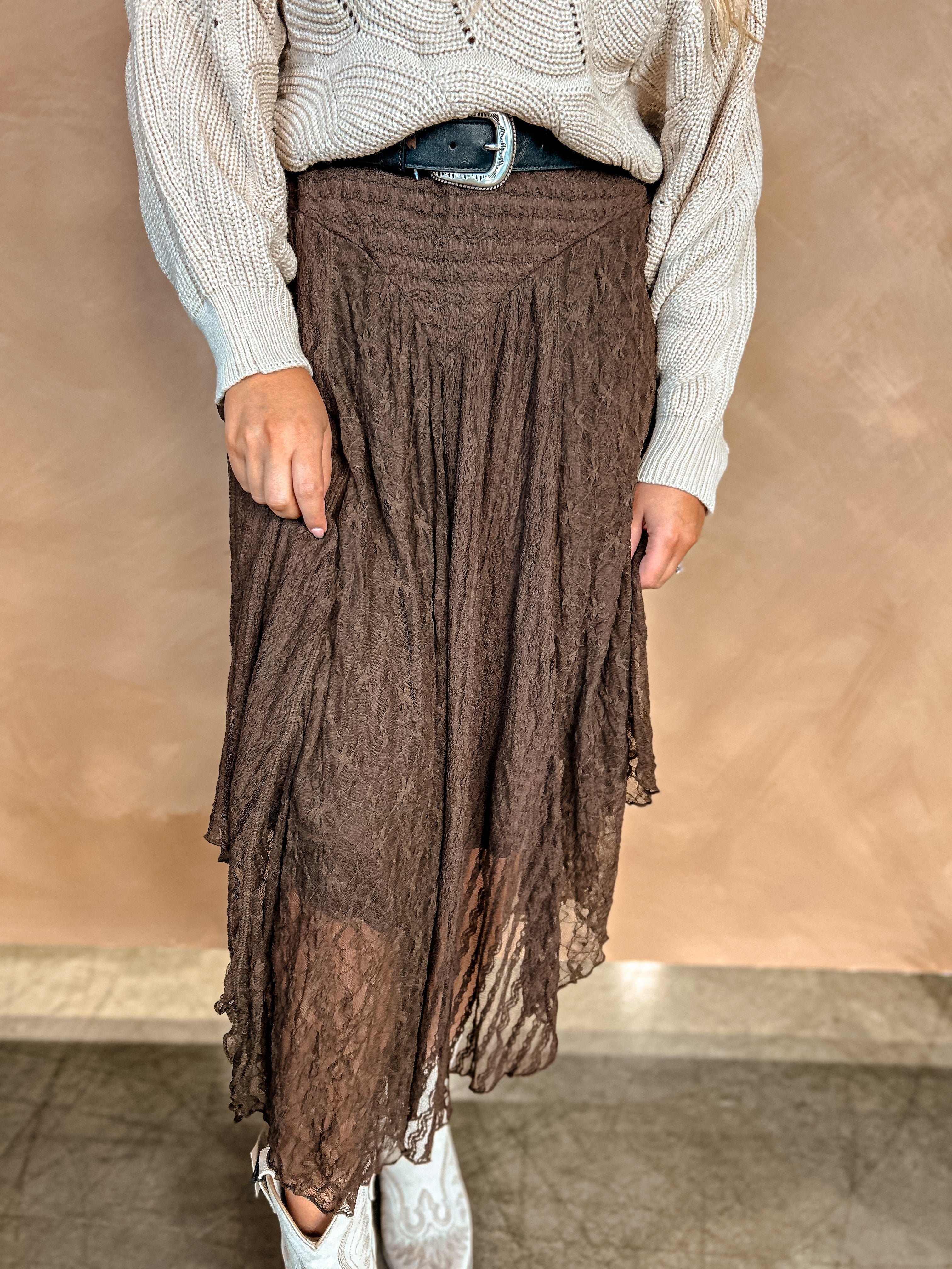 The Mable Lace Skirt {Brown}