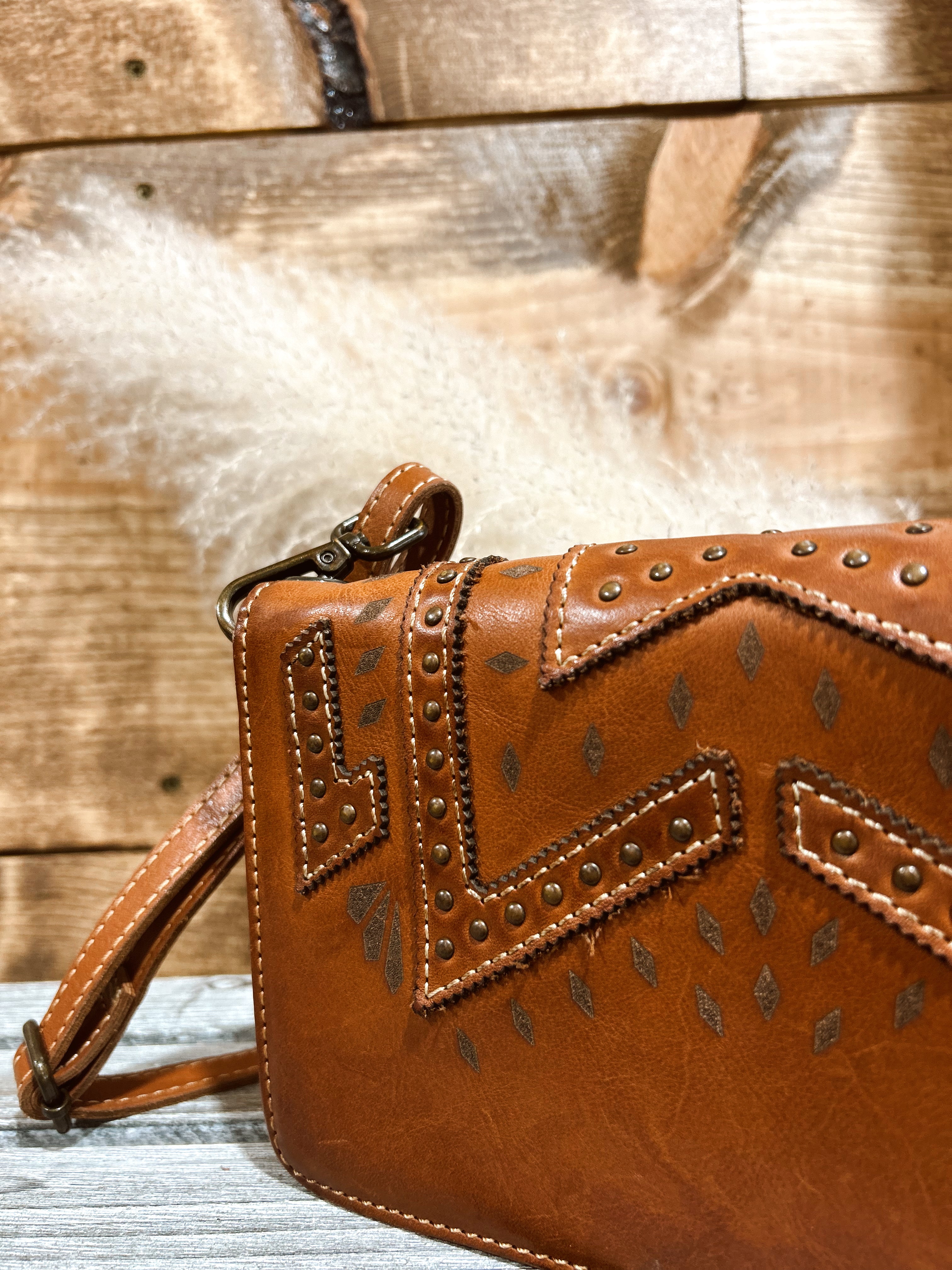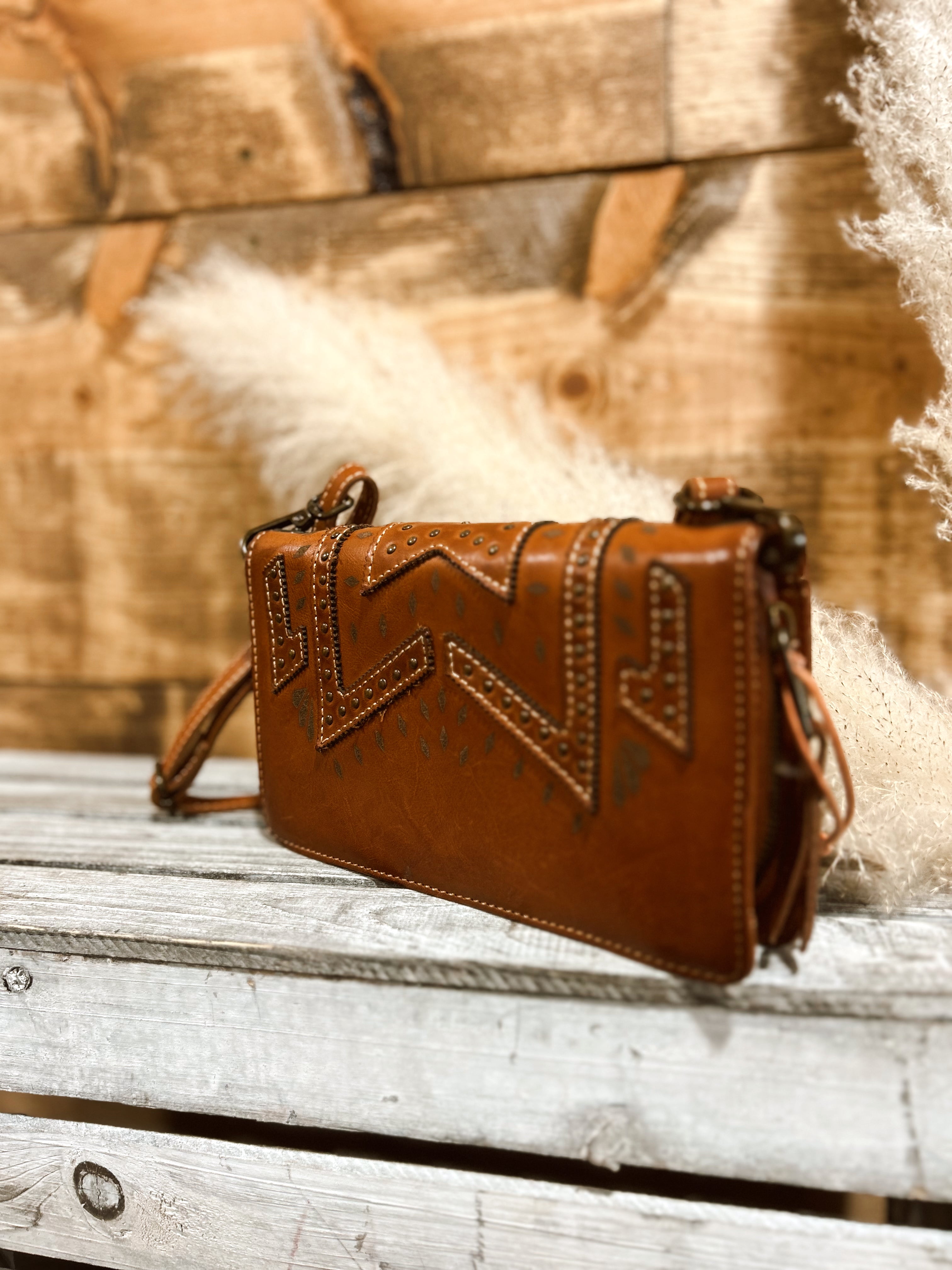 The Wayfarer Evie Organizer is made with full grain, veg-tanned leather. Aztec pattern leather cutouts accent each piece with a unique pattern.