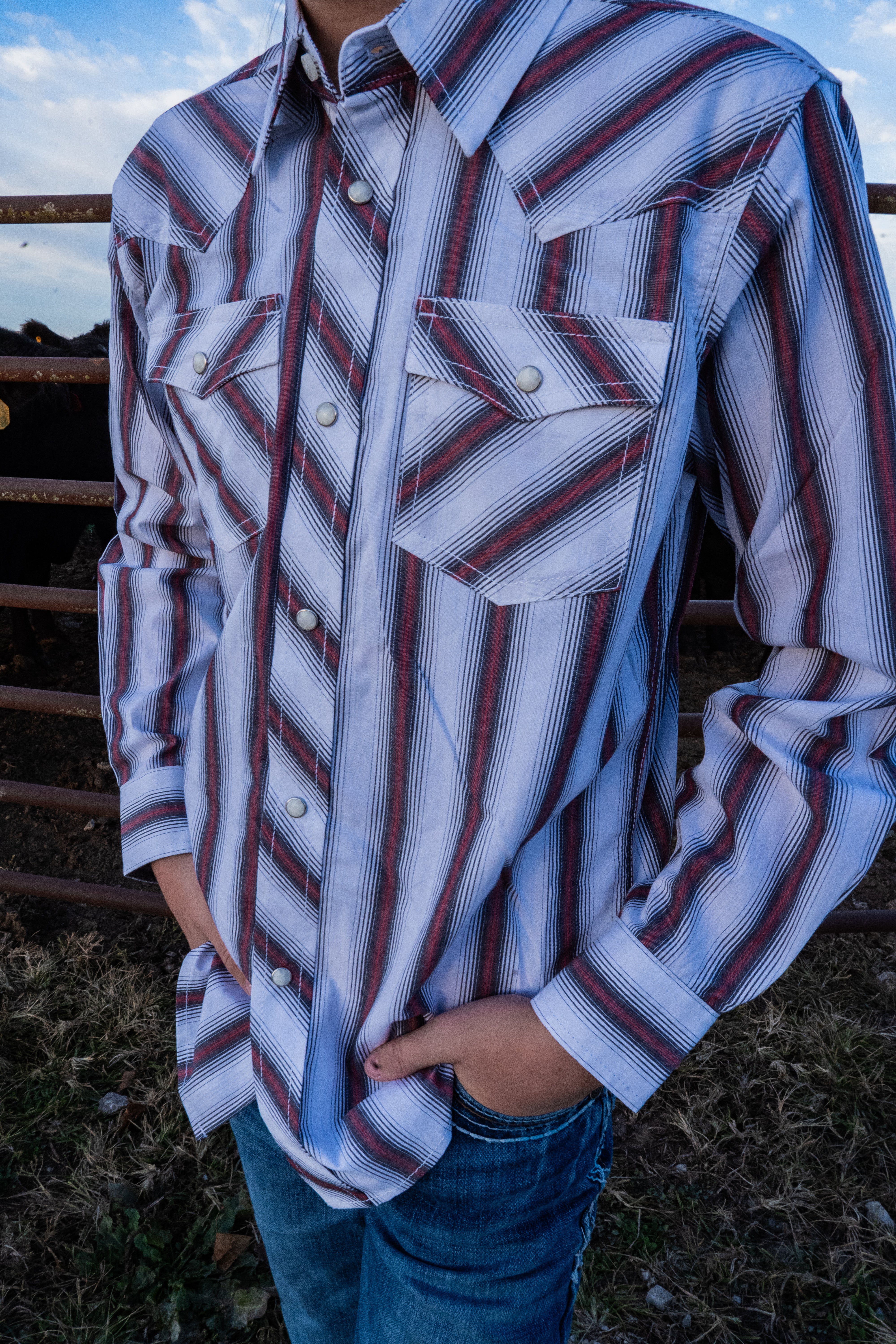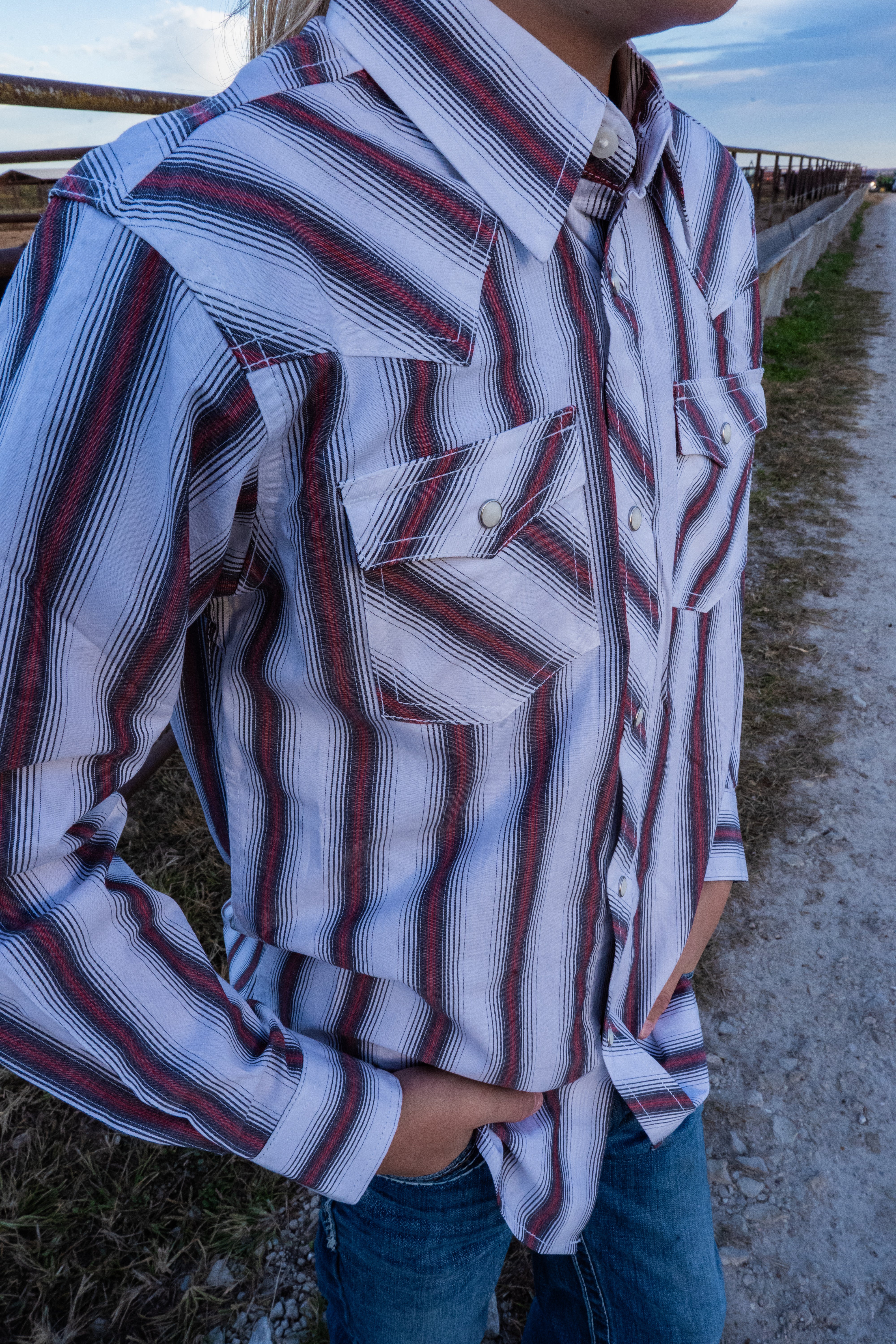Wrangler 20X Youth Striped Pearl Snap {White}