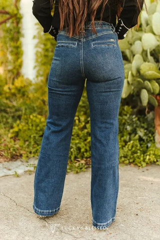 Cruel Denim "Casey" Branded Print High Rise Loose Fit Jeans {Medium Stone} CB76754001