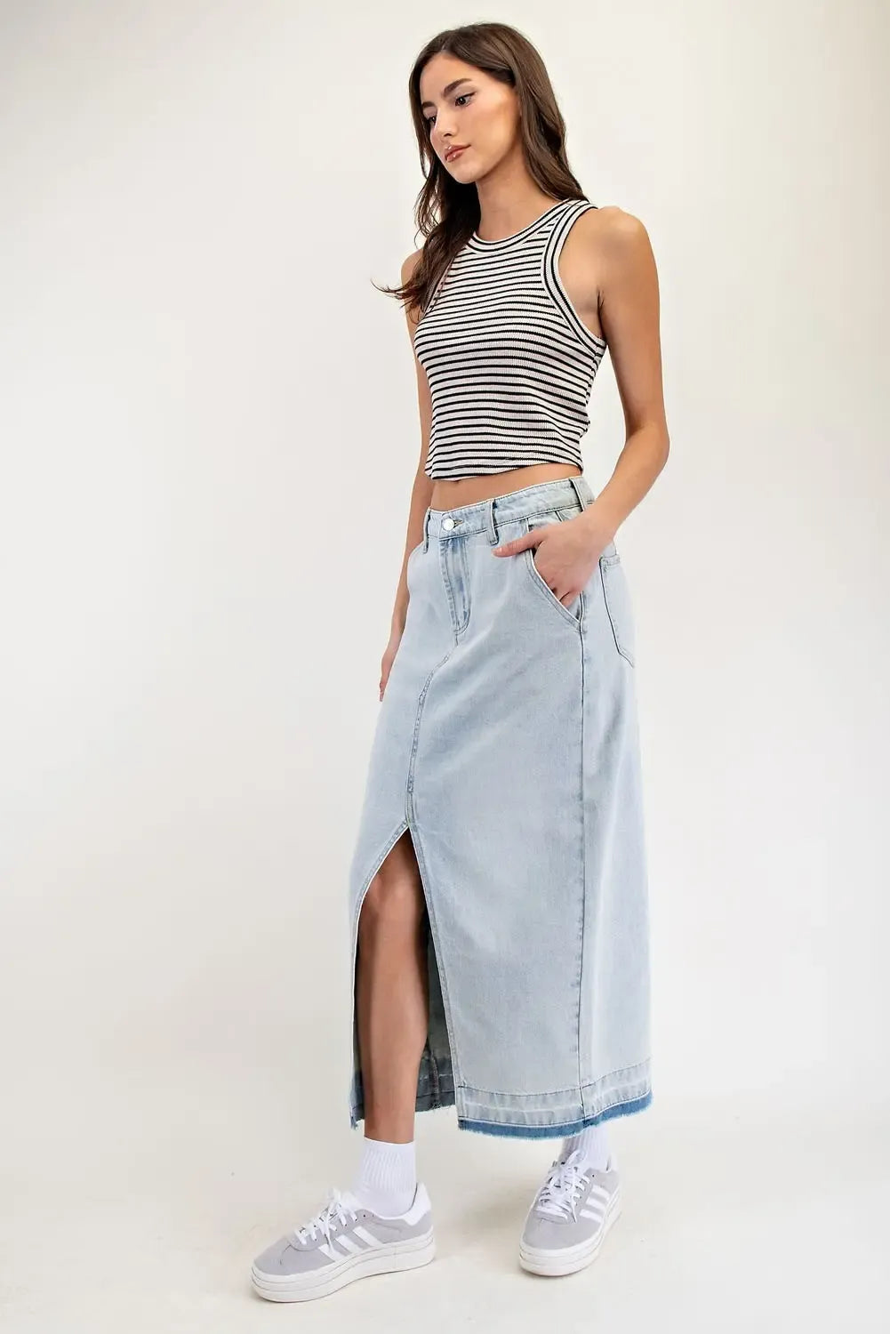 The perfect denim skirt to style for a Spring day or a Sunday at Church! Pair it with a belt and a blouse, and you have the perfect Spring outfit!