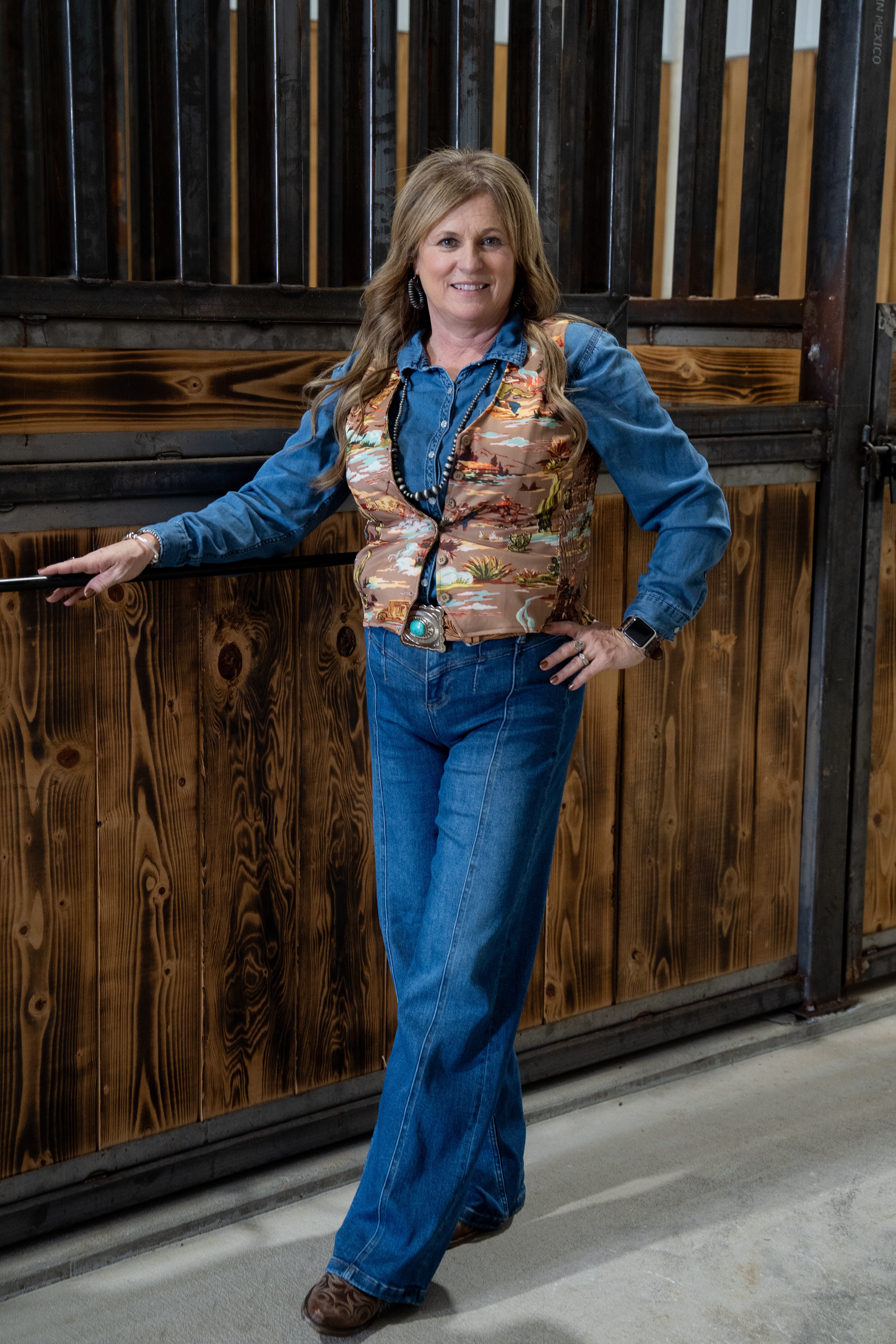 For the punchy cowgirls, this vest was made for you! An easy to style piece, it features a desert scene with pops of colors that makes it easy to match!