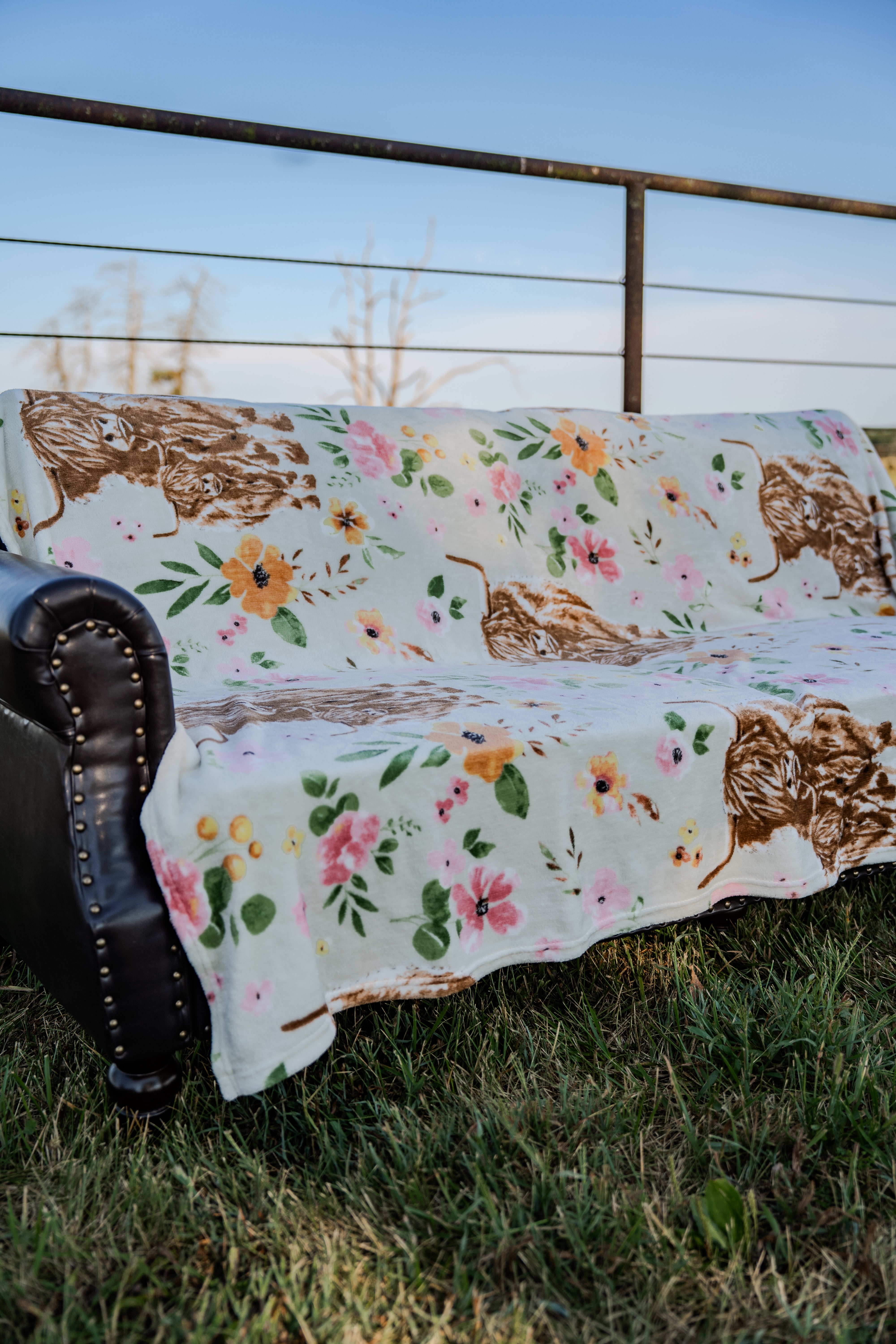 The best blankets ever at the best prices ever! Super soft, fleece western blanket with florals and highlanders!