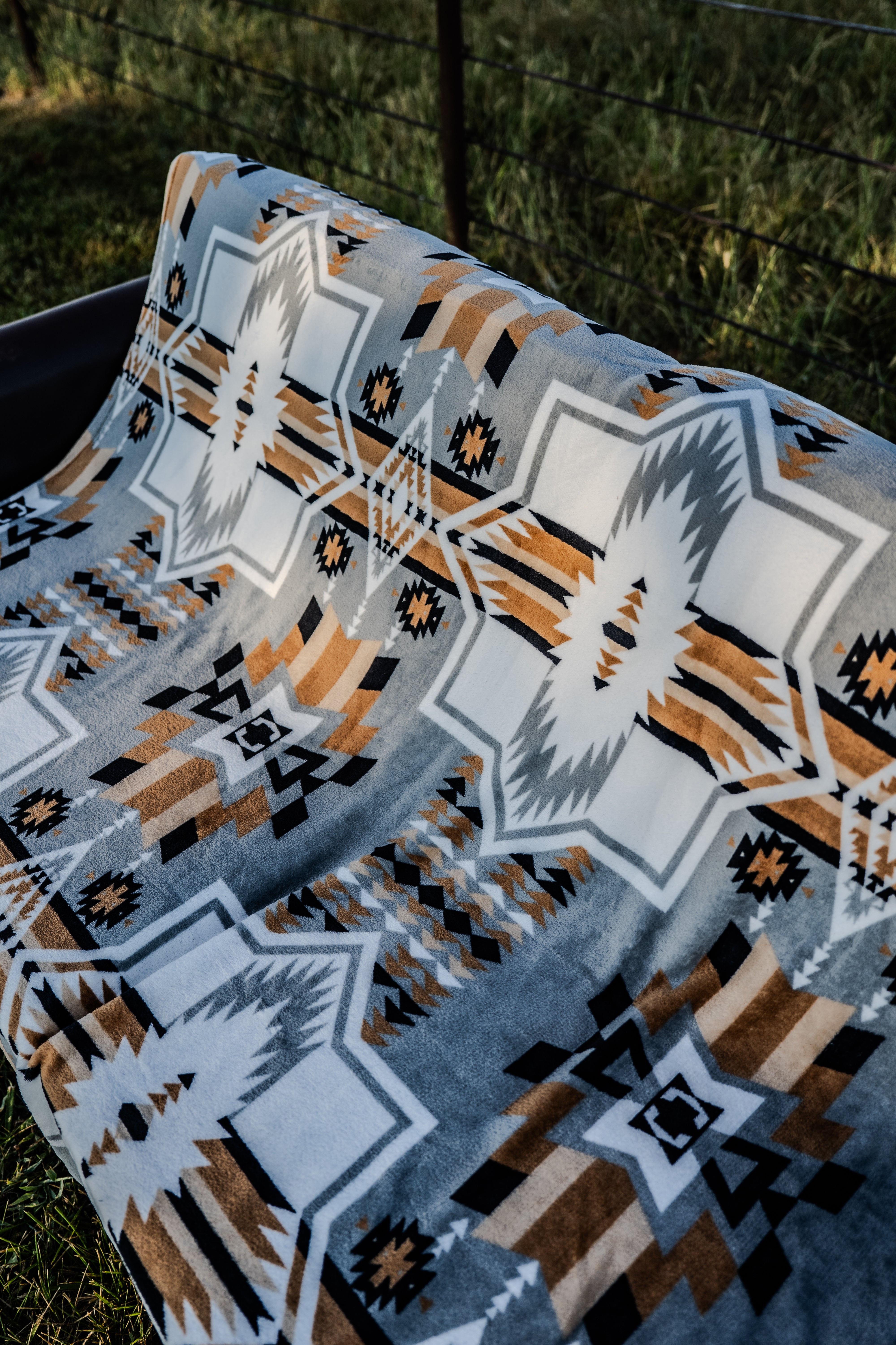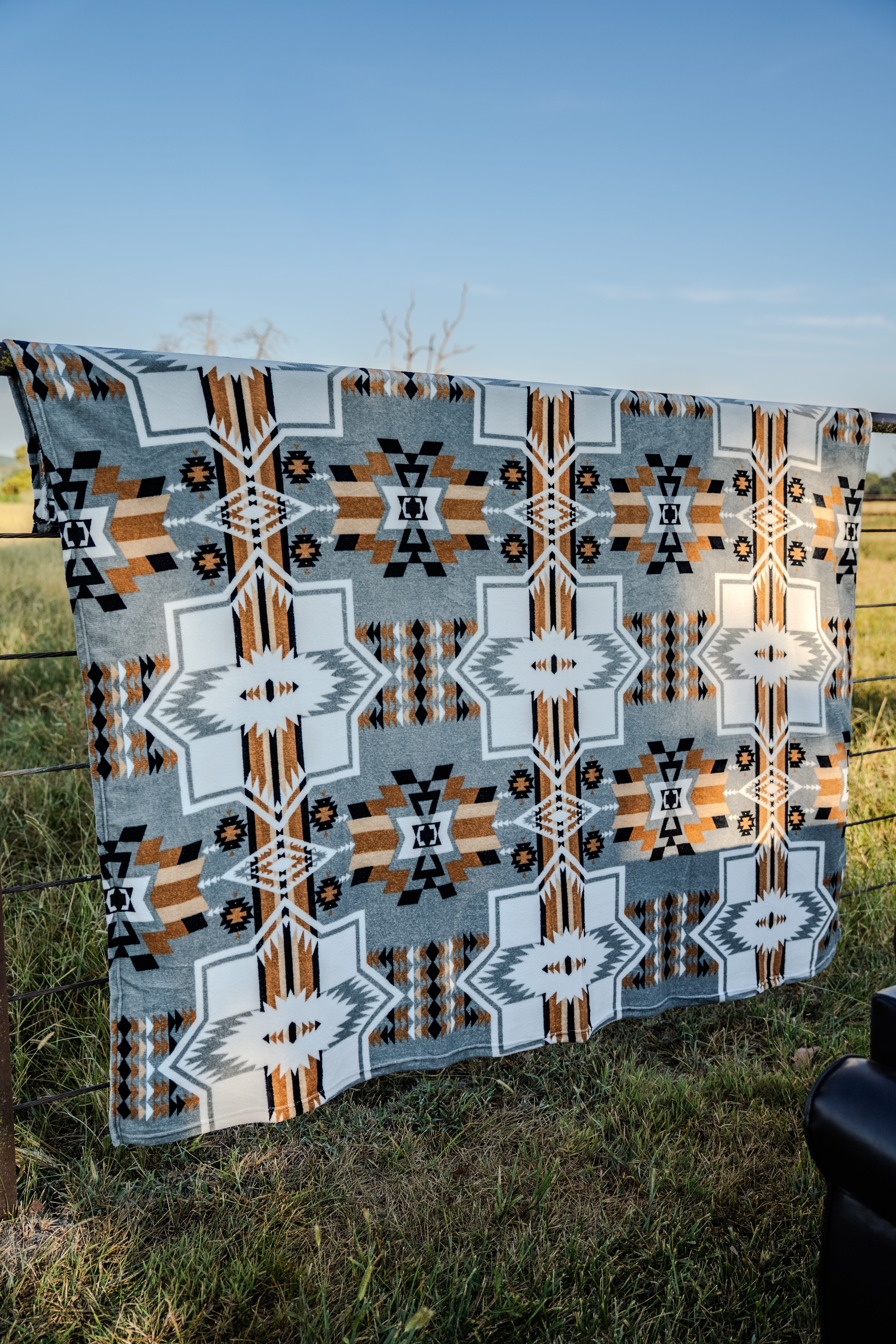 The best blankets ever at the best prices ever! Super soft, fleece western blanket with an aztec design!