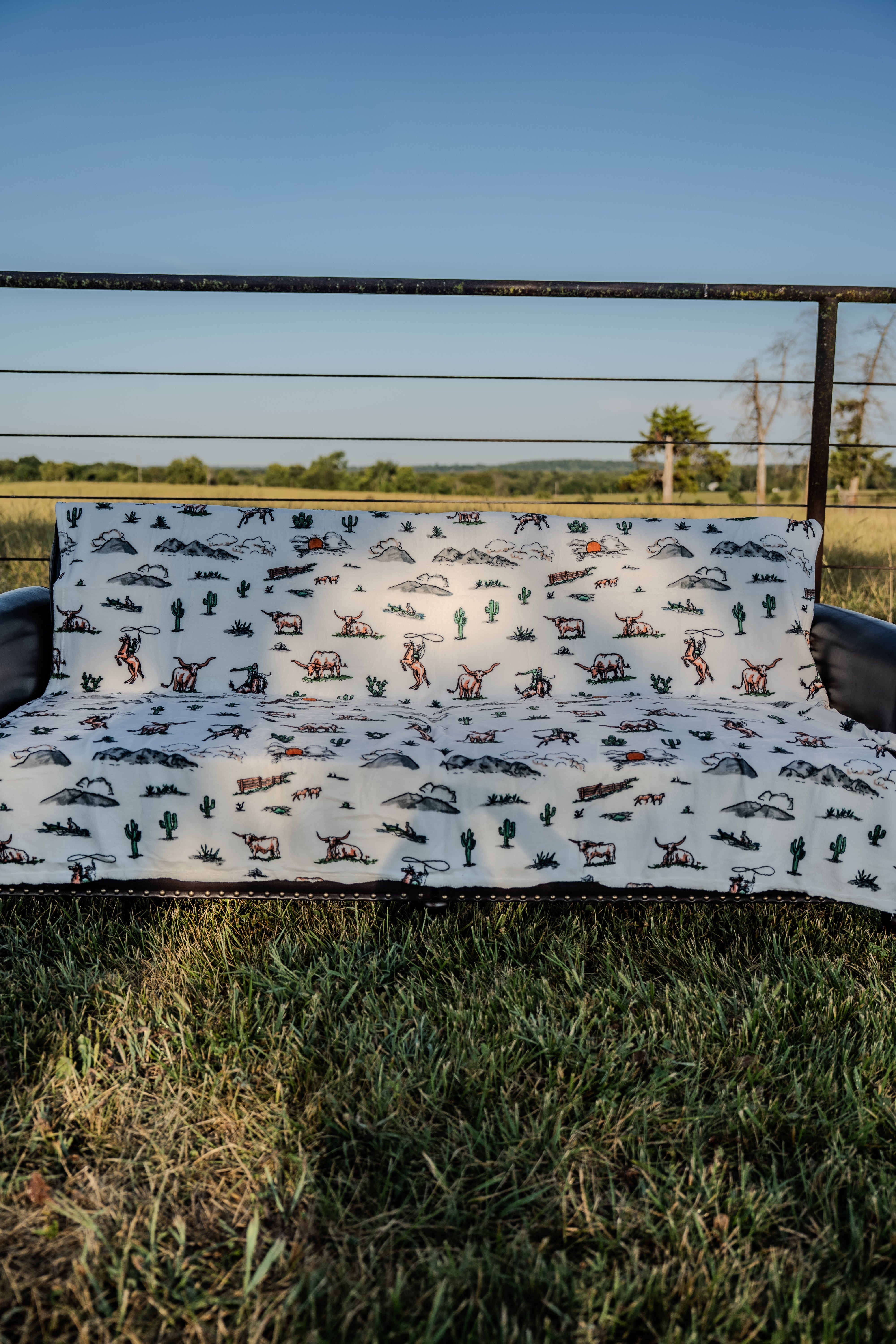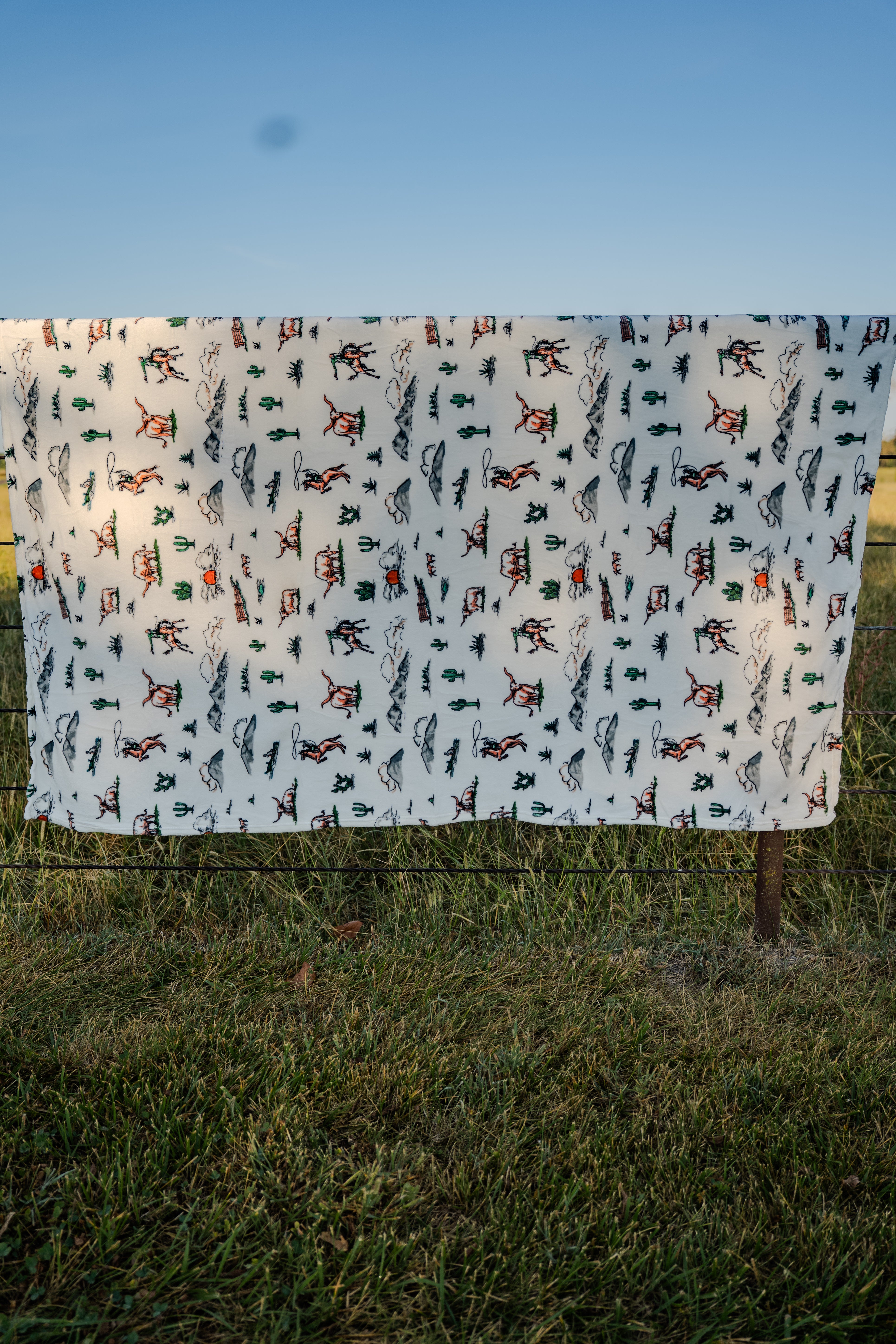 The best blankets ever at the best prices ever! Super soft, fleece western blanket with cowboys, cacti and longhorns!